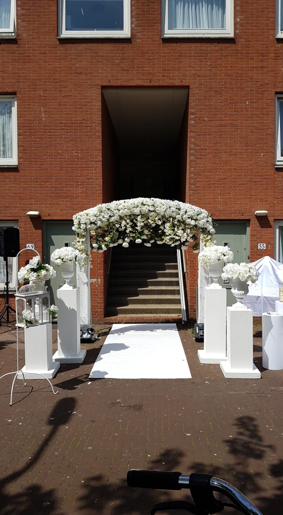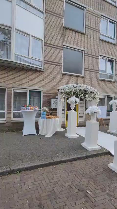 Maak je bruiloft, verloving of speciale gelegenheid compleet met ons prachtige assortiment XL bloemenbogen. Deze exclusieve bogen creëren een sprookjesachtige sfeer en zijn perfect voor zowel traditionele als moderne settings. Alle bogen worden geleverd inclusief een stijlvolle witte loper voor een luxueuze uitstraling.