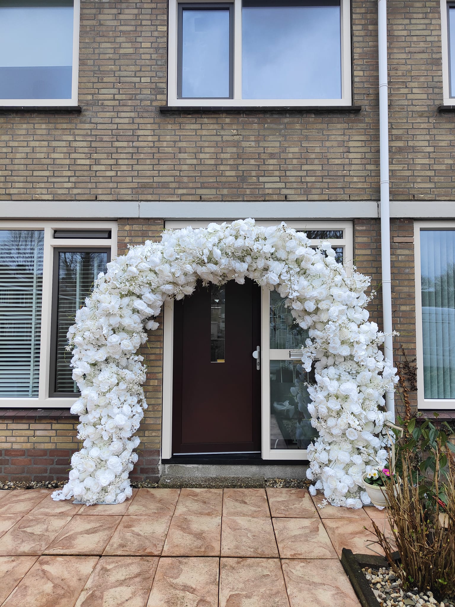 Deze elegante Paris Boog is perfect voor bruiloften, verlovingen en andere bijzondere gelegenheden. De boog is prachtig versierd en straalt een tijdloze charme uit, terwijl de witte loper een chique en stijlvolle touch toevoegt aan jouw evenement.