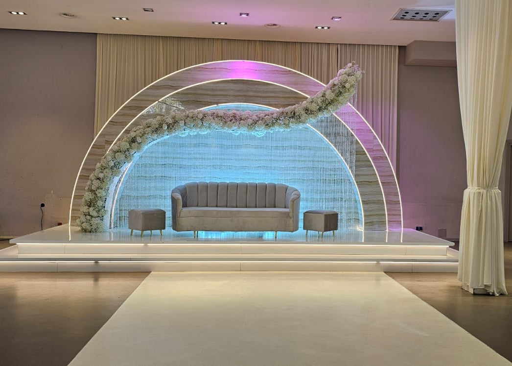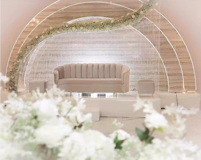 Een luxe en elegante weddingstage die perfect past bij een onvergetelijke dag.